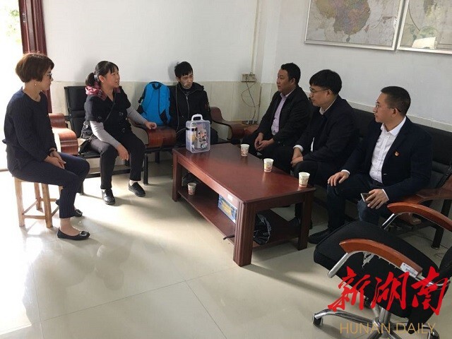(聂时君跟院领导与刘千禧及家长访谈,左一)