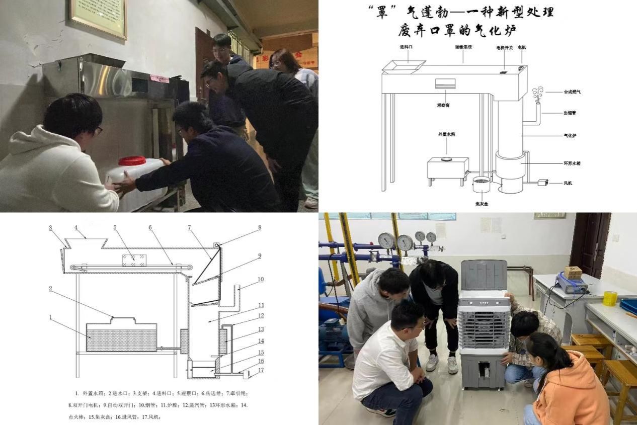 以学生党员郭经哲团队为代表的参赛作品“‘罩’气蓬勃——一种处理废弃口罩的新型气化炉”立足社会现实需求,汲取新冠肺炎疫情防控的经验教训,能够有效降低疾病传播和环境污染,造福人居环境和生态环境保护,成功获得此次节能减排决赛一等奖。该团队指导老师陈旺、刘海力都是党员教师,备赛期间在作品设计、试验检测以及作品讲解等过程中起到关键的监督指导作用。学院党政班子成员也是高度关注备赛进展,期间多次组织学生及其指导老师进行公开答辩,并针对作品的问题和缺陷提出建设性改进意见。