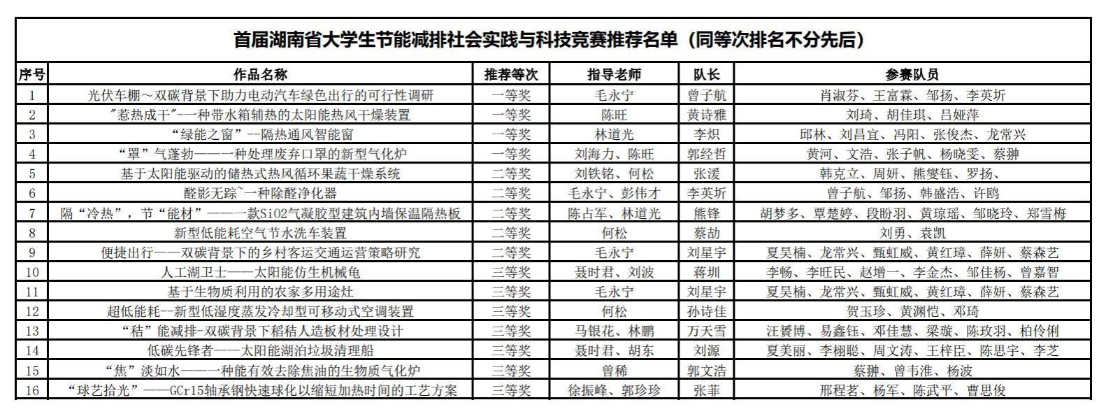 近日,首届湖南省大学生节能减排社会实践与科技创新大赛决赛落下帷幕。44118太阳成城集团能源与机电工程学院斩获一等奖4项,二等奖5项,三等奖7项。