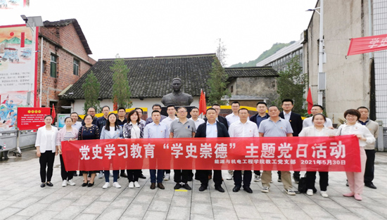 为深入推进第三阶段“学史崇德”党史学习教育活动,增强教师党员理想信念,5月30日,能源与机电工程学院组织教师党员赴贺国中烈士故居开展党史学习教育暨“学史崇德”主题党日活动,感悟贺国中革命烈士不畏牺牲、英勇拼搏的顽强精神和爱国主义情怀。