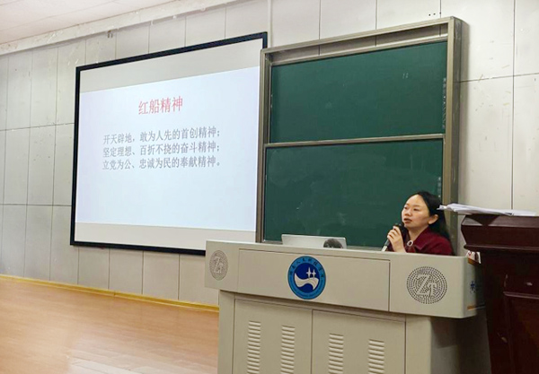 接着,谢柳以《初心与使命》一书和红船精神为切入点,重温了中国共产党带领中国人民进行革命、建设、改革的伟大历史事件,强调身为新时代的大学生应该牢记中国共产党的初心和使命就是为中国人民谋幸福,为中华民族谋复兴。