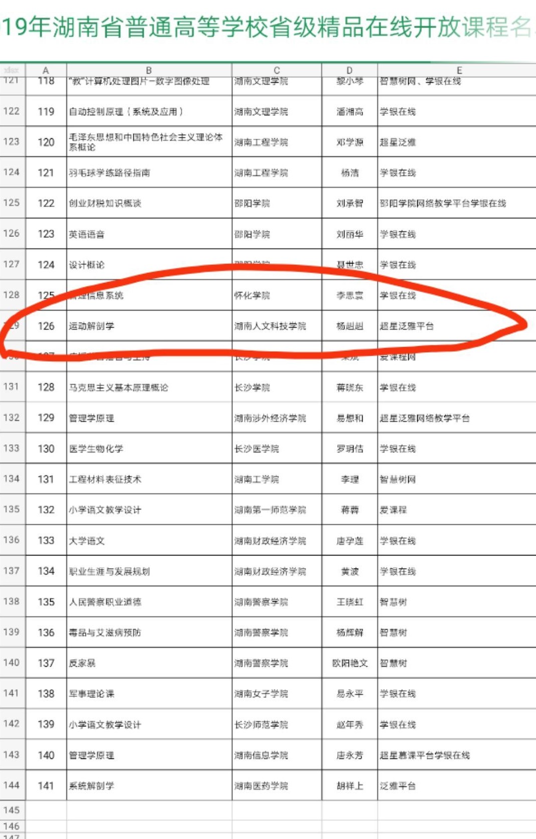 体育学院杨赳赳老师主持的《运动解剖学》课程喜获湖南省精品在线开放课程认定!