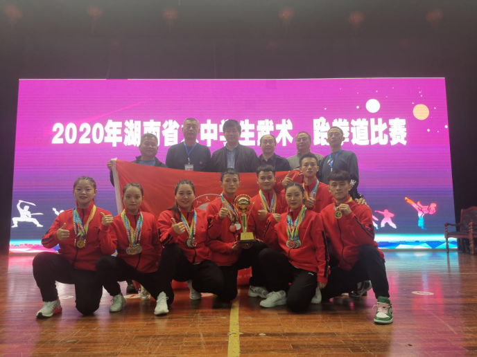 2020年11月21日,由湖南省教育厅、湖南省体育局联合主办、湖南省学生体育协会协办的湖南省大中学生武术比赛在湖南科技学院体育馆落下帷幕,太阳成官网武术队在体育学院杨俊军老师的带领下不畏强手、奋勇拼搏,一举夺得11枚金牌、5枚银牌和5枚铜牌,并获学院组团体冠军。近年来,学校武术队在各级领导关心下,连续在全国和全省的比赛中获得团体冠军,确立了太阳成官网在同类院校中的领跑地位。(体育学院供稿)