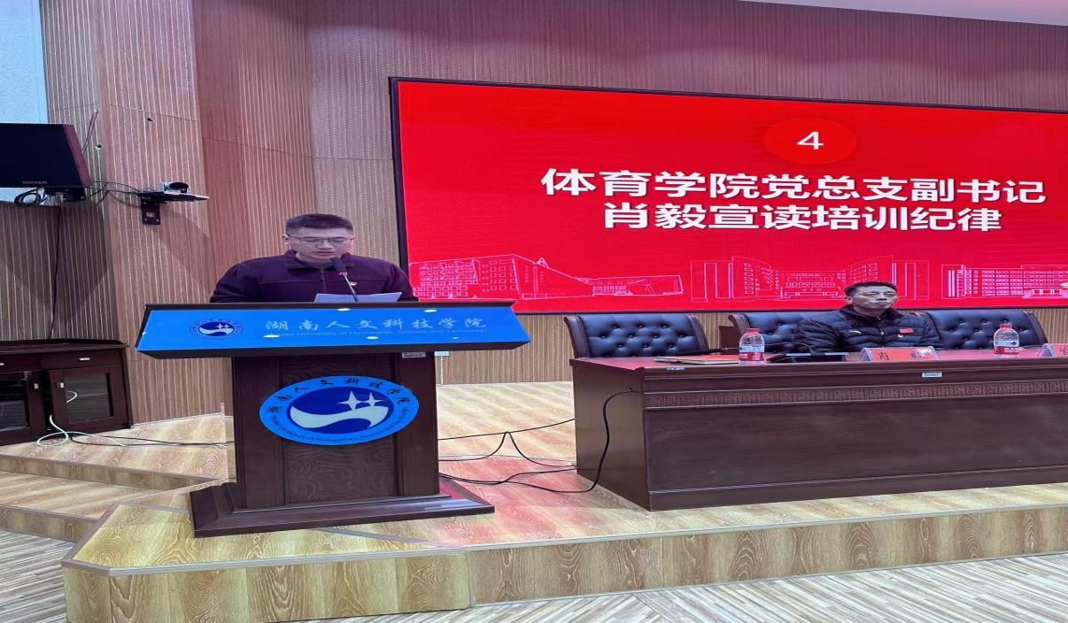 11月24日,体育学院与材环院分党校入党积极分子联合培训班开班仪式在匠成楼多功能厅举行。体育学院党总支书记曾黎、材环院党总支书记钟勇、材环院党总支副书记王新辉、体育学院党总支副书记肖毅,各学院支部书记出席,两院共计154名入党积极分子同学参加,钟勇主持开班仪式。校党委副书记朱强教授主讲第一堂党课。