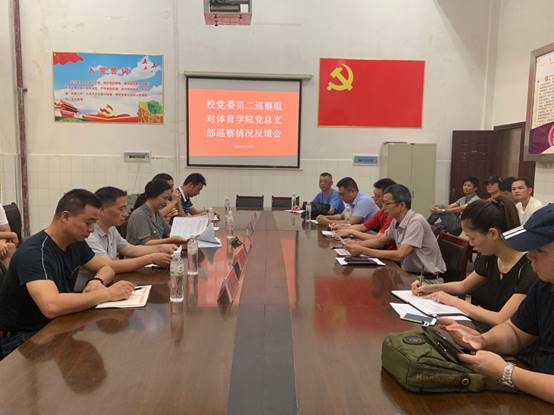 8月7日上午,学校党委第二巡察组在体育馆会议室向体育学院党总支部反馈巡察情况,体育学院全体教职工出席会议。