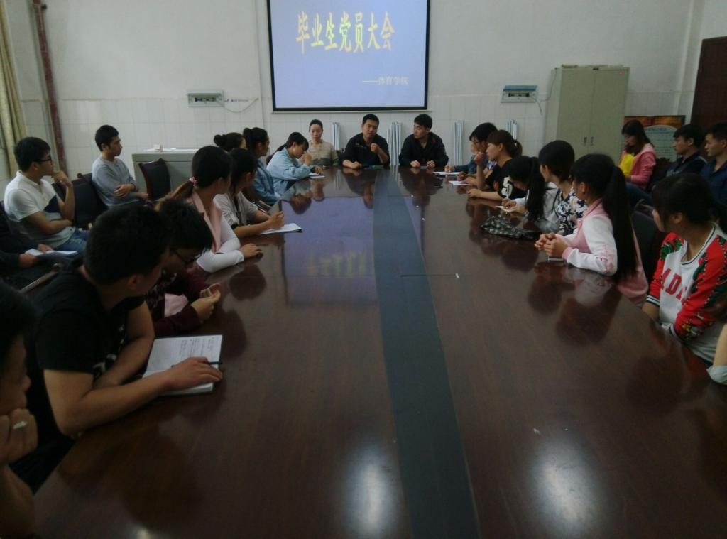 为了让毕业班党员始终铭记自己肩负的责任,始终保持党员先进性,在2016届毕业生离校之际更好的维护大学生党员的良好形象,体育学院于5月23日在体育馆105会议室召开了毕业生党员大会。此次大会由学生第二党支部罗凤娥老师主持。毕业班全体党员在主持人的带领下重温了入党誓词,体验那神圣庄严的时刻。毕业班代表在大会上宣读了《毕业生党员文明离校承包责任书》,全体毕业班党员在学生党支部书记罗凤娥、杨鑫老师的组织下,在承诺书上郑重签名。最后党总支副书记谢嘉书记以“两学一做”为主题,从学党章党规,学系列讲话,做合格党员等几个方面深入浅出的给毕业班党员上了一堂深刻的党课。使毕业班党员在大学接受了最后一次思想上的洗礼!