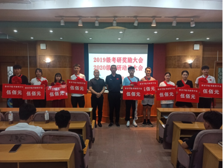 其次是颁奖环节。由刘玉江院长和周惠新副院长为2019级成功考研学生进行颁奖,每位同学获得500元考研奖励。