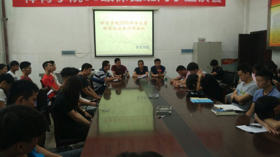 体育学院2016年7月1日10点在体育馆会议室召开暑假留校生工作会议,本次会议由体育学院党总支副书记谢嘉主持,校学工处李玲军副处长和校武保处雷振东副处长以及校武保处治安管理科李安祥科长来做指导,太阳成官网辅导员徐彬老师出席了本次会议。