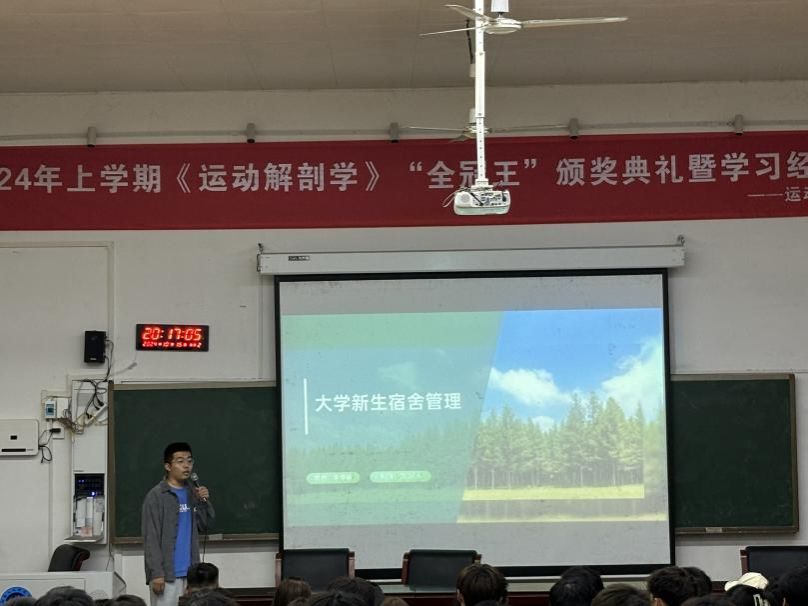 10月15日晚,体育学院在博达楼115成功举办了一场关于大学新生宿舍管理的专题讲座。此次讲座旨在帮助新生更好地适应大学生活,了解宿舍文化建设及日常管理的重要性,确保宿舍环境的和谐与安全。体育学院党总支副书记肖毅、辅导员以及24级全体学生参与。讲座由院文建专干宋学朝老师主讲。