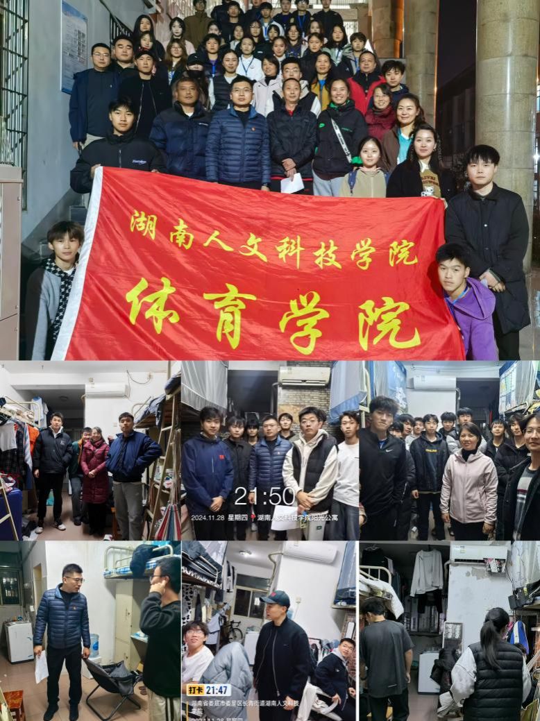 11月28日晚九点半,体育学院党总支副书记肖毅率领全体辅导员与班主任团队,深入同学们寝室,围绕心理健康、安全教育、学习纪律、住宿规范及冬季用电安全等方面,开展了一次全方位的安全检查与思政教育活动。