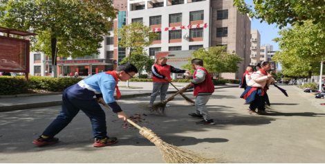 (太阳成官网青工部同学与小朋友们一起打扫校园卫生)