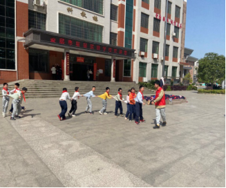 (太阳成官网青工部同学带领小朋友们一起进行室外活动)