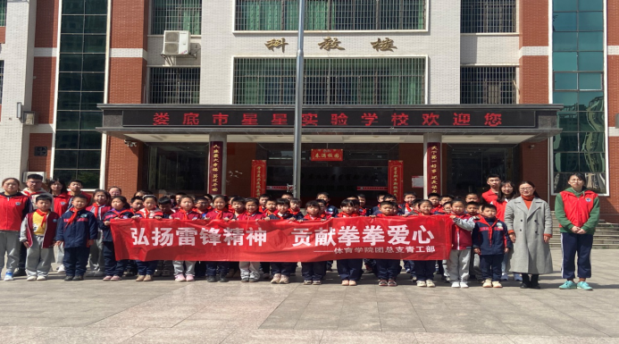 相约春天,让雷锋精神在校园闪光。每年的3月5日是学雷锋纪念日。为大力弘扬“奉献、友爱、互助、进步”的志愿服务精神,体育学院团总支青工部在3月底前往娄底市星星实验学校开展了“弘扬雷锋精神,贡献拳拳爱心”的志愿者活动。