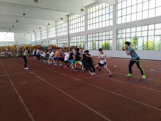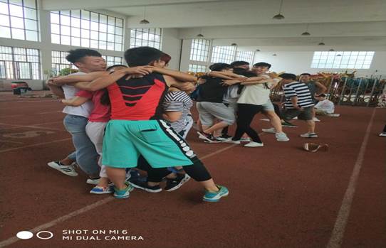 活动第一项“踩报纸”,16级和17级同学以班级为单位,六人一组锻炼团队间的合作力,凝聚力。