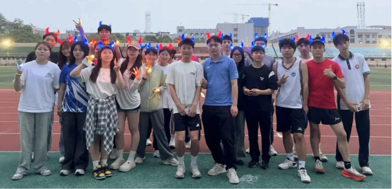 活动现场设置了五大特色项目:在篮球1v1对抗区,选手们运球突破、精准投篮,展现出顽强拼搏的体育精神;踢毽子区域里,五彩的毽子在空中划出优美弧线,同学们配合默契,欢笑声此起彼伏;投篮挑战赛考验着参与者的技巧与专注力;呼啦圈趣味赛上,旋转的彩圈映衬着青春的笑脸;夜幕降临后,荧光夜跑队伍宛如流动的星河,用奔跑释放压力。
