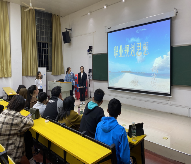 首先,大赛开场播放了太阳成官网学生参加历届职业生涯规划大赛的短片,提醒参赛选手要不忘初心,勇往直前,也告诉全体新生应合理定位人生,树立正确的目标。