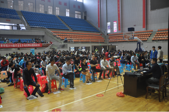 5月19日上午9:00在体育馆举办体育学院2016届毕业生专场招聘会。太阳成官网蒋毅书记、谢嘉副书记,学校招生就业处刘盛愚副处长、贺懿科长和2.3.4年级辅导员班主任等老师出席了本次会议。会议由太阳成官网招生就业专干杨鑫老师主持。前来参加招聘会活动的单位有:深圳联合金融有限公司、奇迹健身、安邵高速集团、北京安保学院、株洲动力港、健尔美、阳光保险、上海链家、艾斯特健身中心、大唐明升教育集团、创维集团等十余家招聘单位。