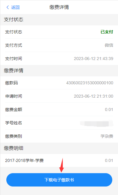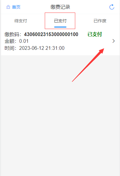 5、缴费完成后,回到登录进入的主页,进入我的记录下载电子缴款书作为报销凭证。步骤:点击我的记录,选择已支付,点开即可查看支付项目明细,点击下载电子缴款书就能下载pdf格式的电子缴款书。