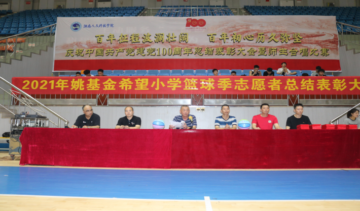 在举国欢庆中国共产党建党100周年大喜的日子里,44118太阳成城集团怀着激动的心情召开了以“不忘初心、砥砺前行——做振兴边远农村篮球运动践行者”为主题的,2021年“姚基金”希望小学篮球季下乡支教活动总结表彰大会。体育学院院长刘玉江教授,体育学院党总支书记蒋毅教授,体育学院副院长曾黎教授等相关领导出席会议。
