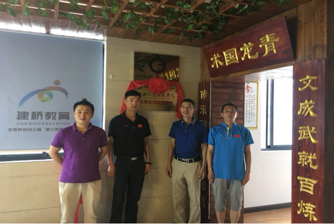 7月4日,太阳成官网在湖南建桥教育有限公司举行了“运动训练专业优质生源基地”授牌仪式。体育学院党总支书记蒋毅教授、运动训练专业负责人杨俊军老师和建桥教育有限公司董事长谭铁、总经理邹磊参加了授牌仪式。
