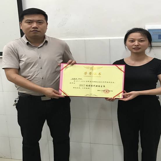 会议第二项,党总支谢嘉副书记为2017级14位代理班主任颁发聘书。并从中选拔并表彰了6位优秀代理班主任。