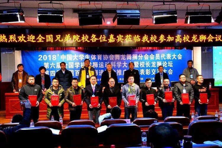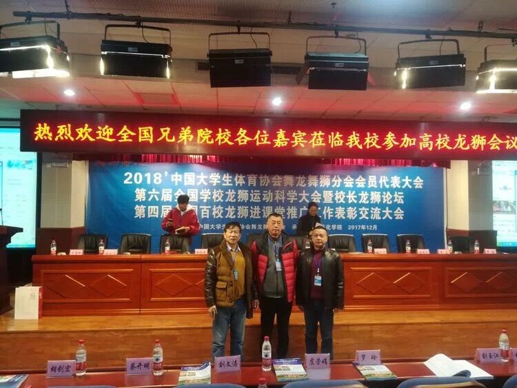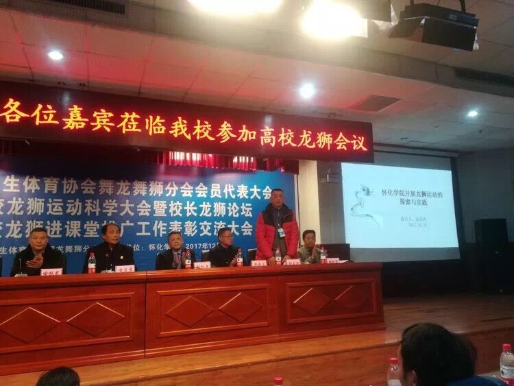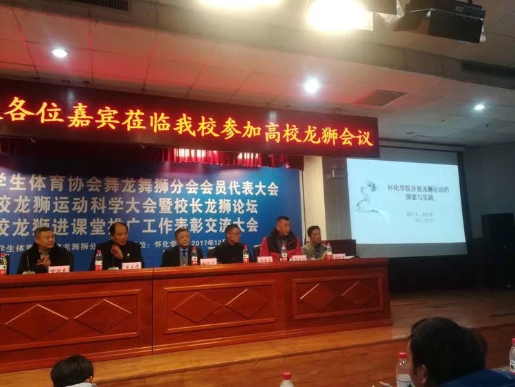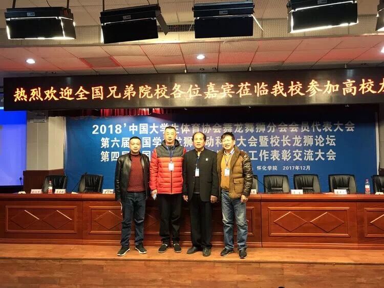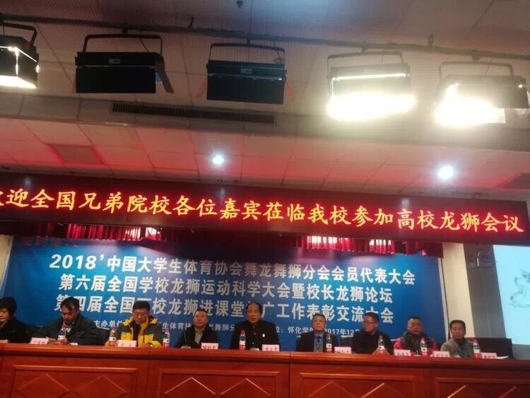 2017年12月22日至24日,2018'中国大学生体育协会舞龙舞狮分会会员代表大会、第六届全国学校龙狮运动科学大会暨校长龙狮论坛、第四届全国百校龙狮进课堂推广工作表彰交流大会,在湖南怀化学院东校区隆重召开。