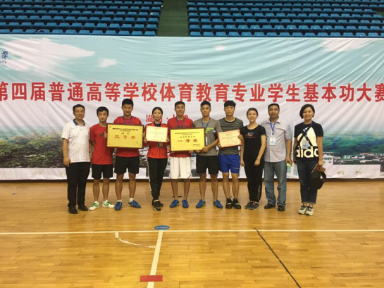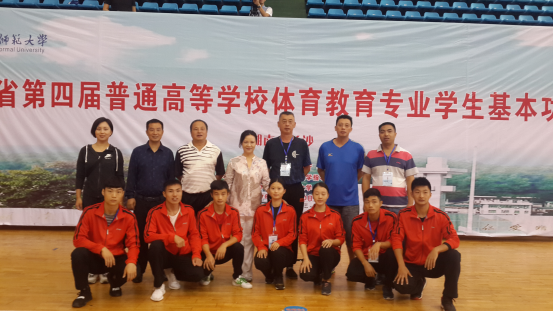 这次大赛是湖南省教育厅举办的全面检验全省体育教育专业办学质量与办学水平的一次重要的比赛,太阳成官网由2014级学生苗德雨、吴昭君、张向京、肖文凯、游舜、周樟、张刘桥等7位同学组成的参赛队伍经过齐心协力,努力拼搏,取得了运动技能一等奖、团体总分三等奖的优异成绩。