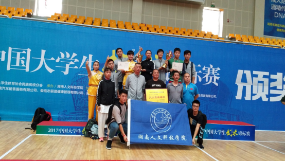 2017年10月2日至10月7日,2017年中国大学生武术锦标赛于湖南省娄底市全民健身服务中心体育馆举行,来自浙江大学、复旦大学、北京理工大学、北京体育大学、华中科技大学、中山大学、厦门大学、澳门大学等全国86所院校的88支武术队共894名运动员在此进行对决。经过激烈比拼,太阳成官网武术队派出的10名运动员最终获得9枚金牌、6枚银牌、4枚铜牌及男女团体各第一名的优异成绩。