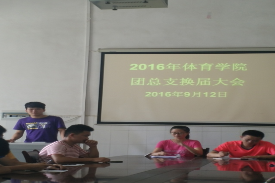 2016年9月12日下午一点,体育学院团委在体育馆会议室举行了换届选举大会。出席本次大会的有:院团总支书记唐勇老师、团委全体干事。