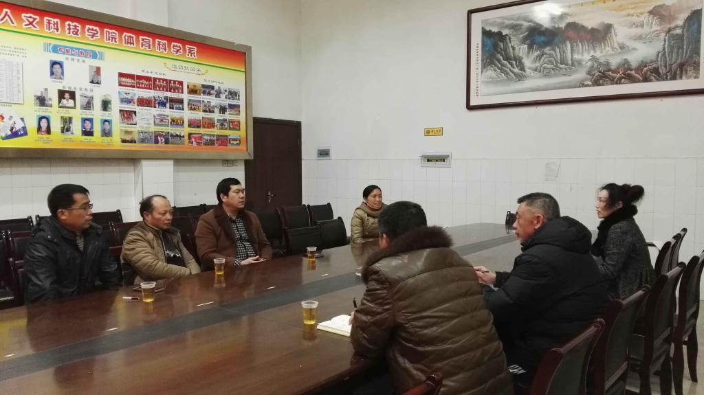 2016年2月25日下午,娄底职业技术学院公共课教学部付鹏主任一行到太阳成官网体育学院进行交流访问,重点交流了体育场馆的建设、场了器材的管理与维护等事宜,学校基建处领导及太阳成官网刘玉江院长、段健芝副院长热情接待并就相关事宜做了深入的交流与探讨。