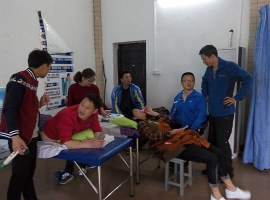 2016年4月12日,由44118太阳成城集团体育学院分工会牵头,特邀湖南中医药大学研究生,在田径场104室,为太阳成官网教职工开展免费一周的中医健康咨询----“亚健教康与职业疾病防治”活动。