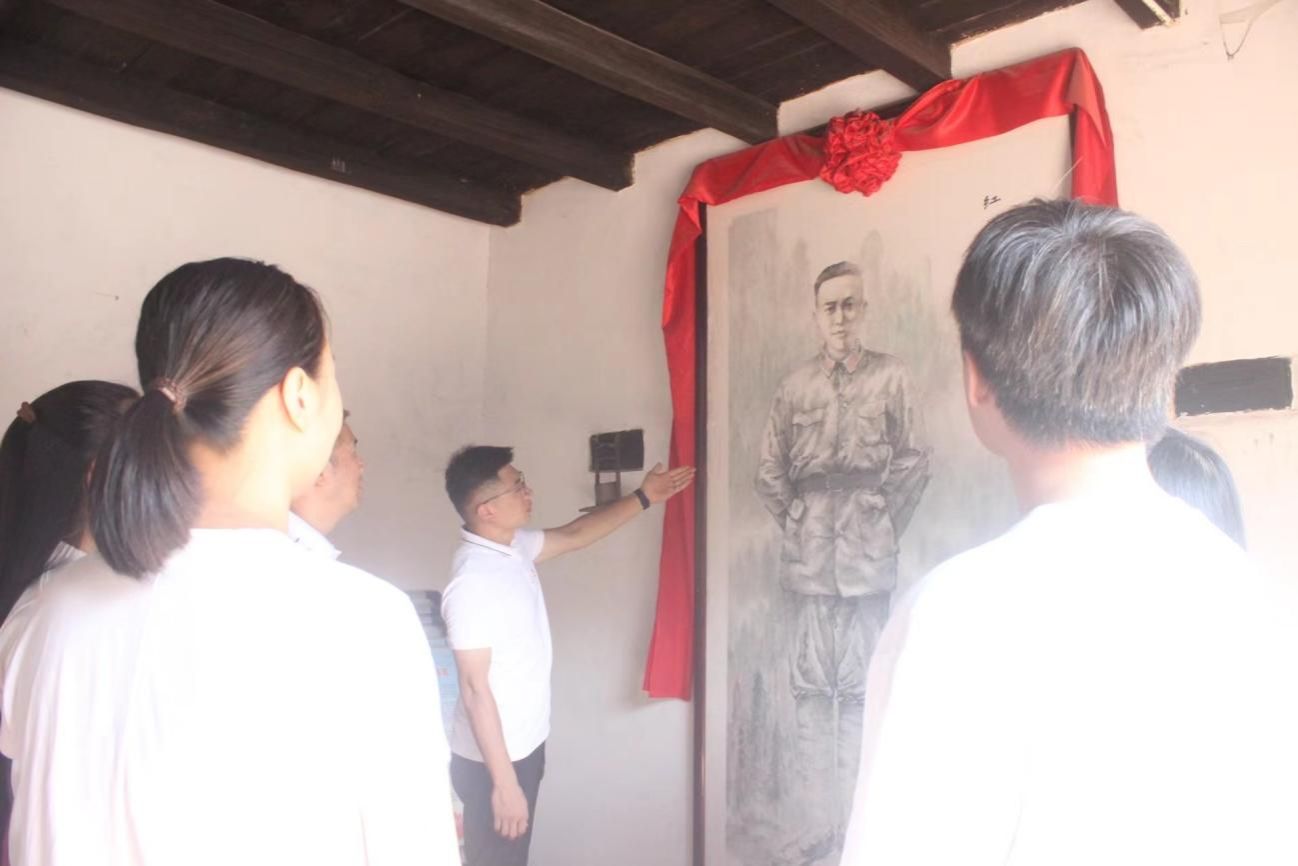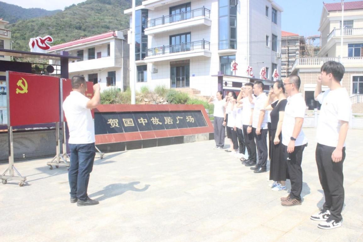在故居内,教工第一党支部的全体党员共同瞻仰了“虎将贺国中”的宏伟画像。众人神情肃穆,纷纷鞠躬致敬,以此表达对这位伟大革命先烈的深切怀念与崇高敬意,并向贺国中烈士的塑像敬献了鲜花。学院党总支副书记,纪检委员肖毅同志组织大家一起学习了娄底党史人物的廉洁小故事,闵婷同志向同志们详细介绍了贺国中同志的光辉生平与英雄事迹。在贺国中故居广场,张劲松同志带领教工第一党支部的全体党员共同重温了入党誓词,同志们声音坚定,誓言铿锵,表达了不忘初心、牢记使命,永远跟党走的坚定信念与决心。