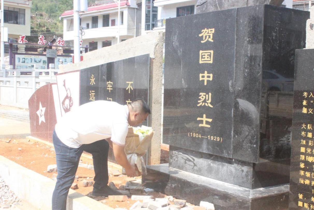 (张劲松同志代表支部全体党员向贺国中烈士塑像敬献鲜花)