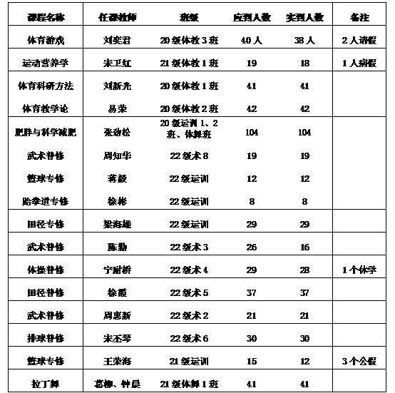总体来说,新学期开学第一课教学秩序井然,任课教师均能提前到达指定教学场所,积极做好教学准备,授课充满激情,教学效果良好;学生出勤率高,学习积极主动,与任课教师互动良好,展现了体育学院良好的教风与学风,教学设备运行良好。当然,也存在着个别瑕疵,比如:细心的刘院长发现体育场馆个别角落存在有环境卫生死角的现象,督促任课教师进行了现场整改。