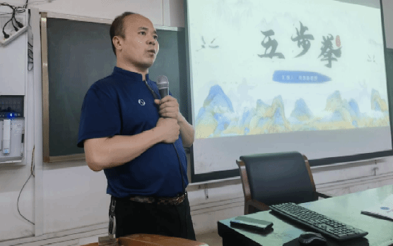 在展示课上,周惠新教授首先以武术“五步拳”为主题,为学生们讲解了武术的深厚文化内涵和历史背景,同时结合动作示范,展示了五步拳的技术要领和攻防转换,要求学生用功固守有形,用心融入无形。周教授在授课中强调,通过习练中华武术,可以培养学生胸怀大局,自信开放,迎难而上,追求卓越,拥抱未来的思政能力。