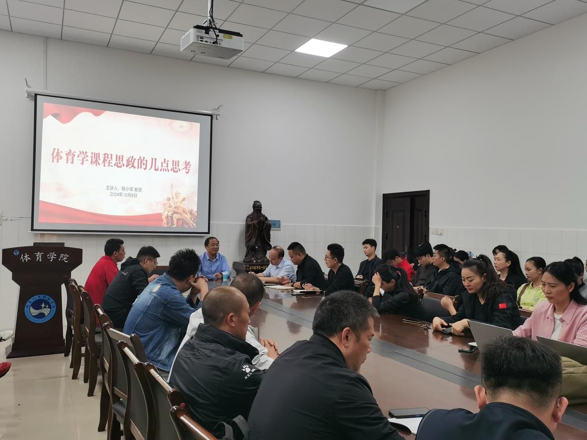 为全面落实立德树人根本任务,深入推进体育学课程思政建设,进一步提升太阳成官网教师的学术能力,10月8日下午,体育学院特邀湘潭大学马克思主义学院杨小军教授开展“体育学课程思政的几点思考”学术讲座,共同探讨如何将思政教育融入体育学课程,实现立德树人的教育目标。讲座由体育学院宁耐桥博士主持,全体院领导和教师共同参与。