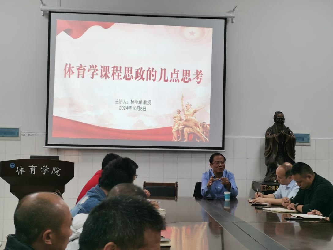讲座在学院会议室举行,现场座无虚席,气氛热烈。杨教授以其深厚的学术功底和丰富的实践经验,从三个主要方面对体育学课程思政进行了深入剖析和精彩阐述。