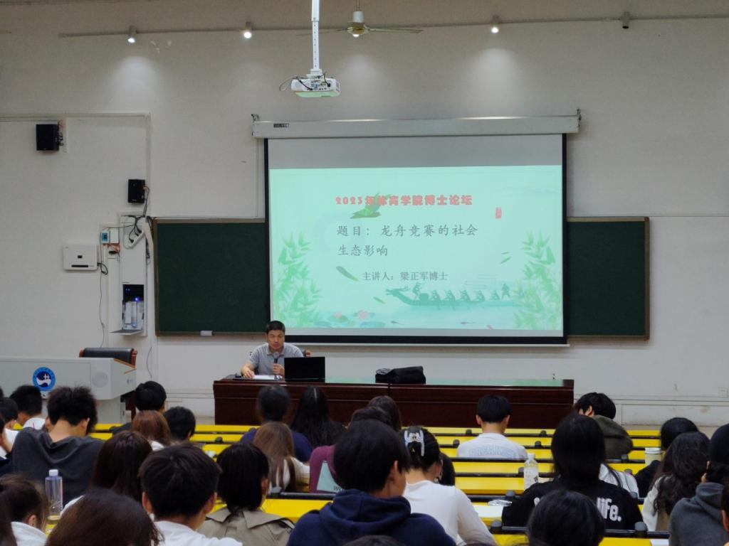 10月31日晚上19:30分,体育学院梁正军博士在博达楼115教室作了题为《龙舟竞赛的社会生态影响——以五溪流域为例》的专题讲座。体育学院100余名学生及相关教师参加了讲座,讲座由龙宋军博士主持。