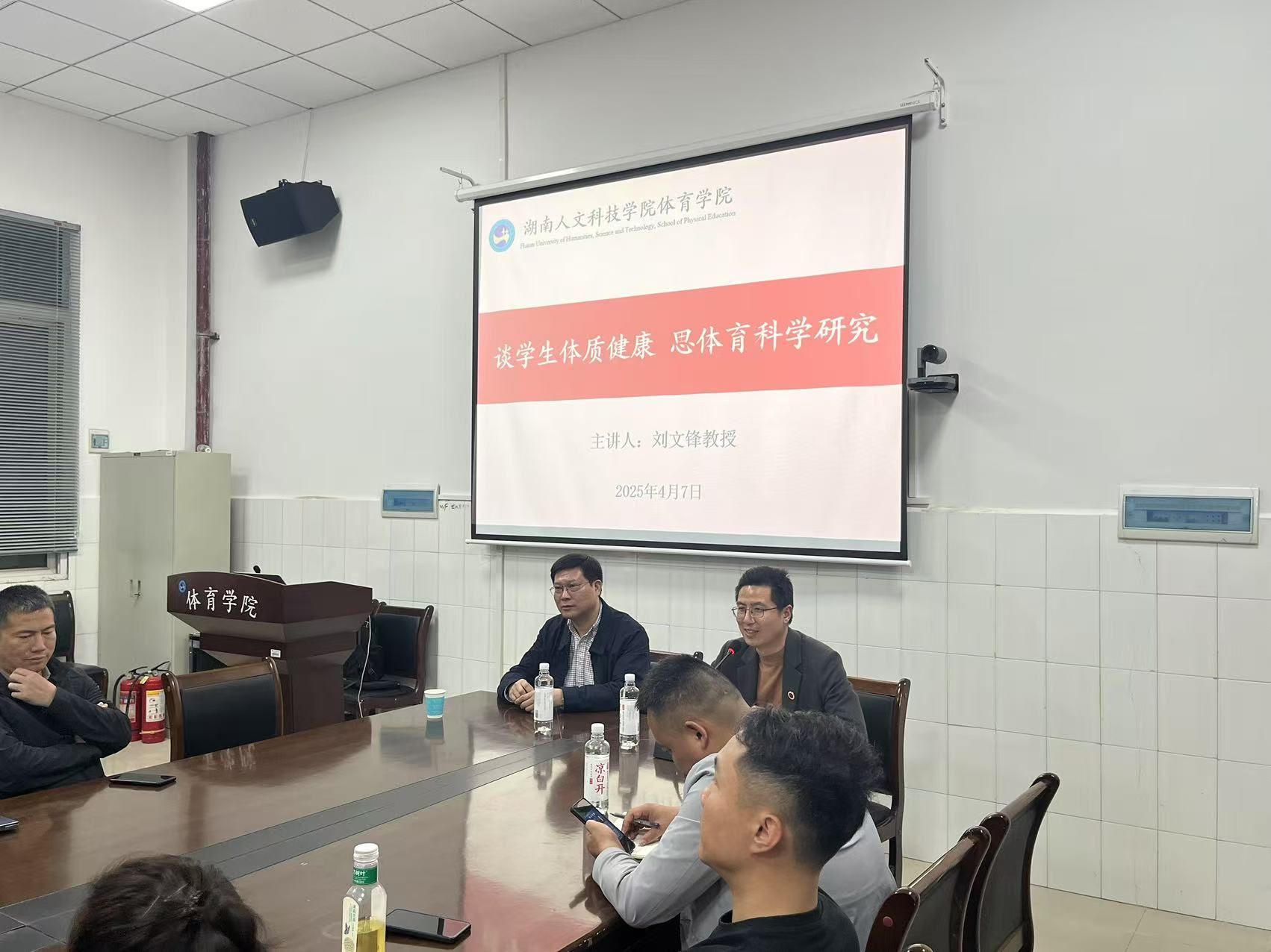 4月8日,体育学院特邀湖南师范大学博士生导师刘文锋教授,举办题为《谈学生体质健康 思体育科学研究》的主题报告。报告会由体育学院副院长董植寿主持,学院全体教师积极参与学习与交流。