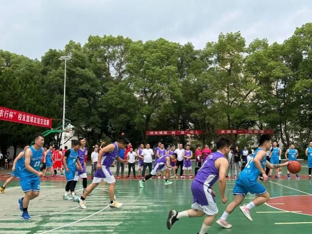 随后,由体育学院筹办在新光球场举行的“农行杯”校友篮球友谊赛中,来自各地的近100位校友与母校老师组成的六支队伍展开了激烈的角逐。