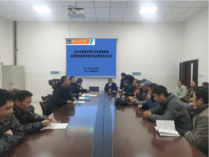 2024年12月19日下午1 4 : 0 0,大学体育教研室在体育馆会议室召开了本科教育教学审核评估专题会议。会议由大学体育教研室主任唐勇主持,副院长陈勤出席并作重要发言。
