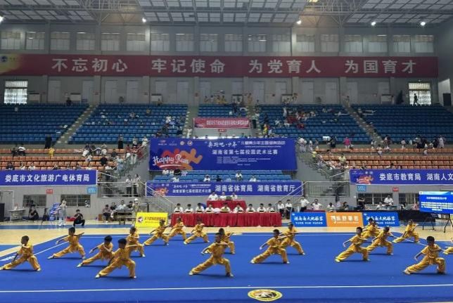 来自全省各地的78支顶尖校园武术代表队、2100余名武术健儿齐聚娄底,以武会友。赛事设“校园武术段位制推广集体项目综合展演”与“校长喊你来运动——国脉传承,薪火相传”交流赛两大项目,旨在以赛为媒,深化体教融合,推动传统武术文化传承创新。