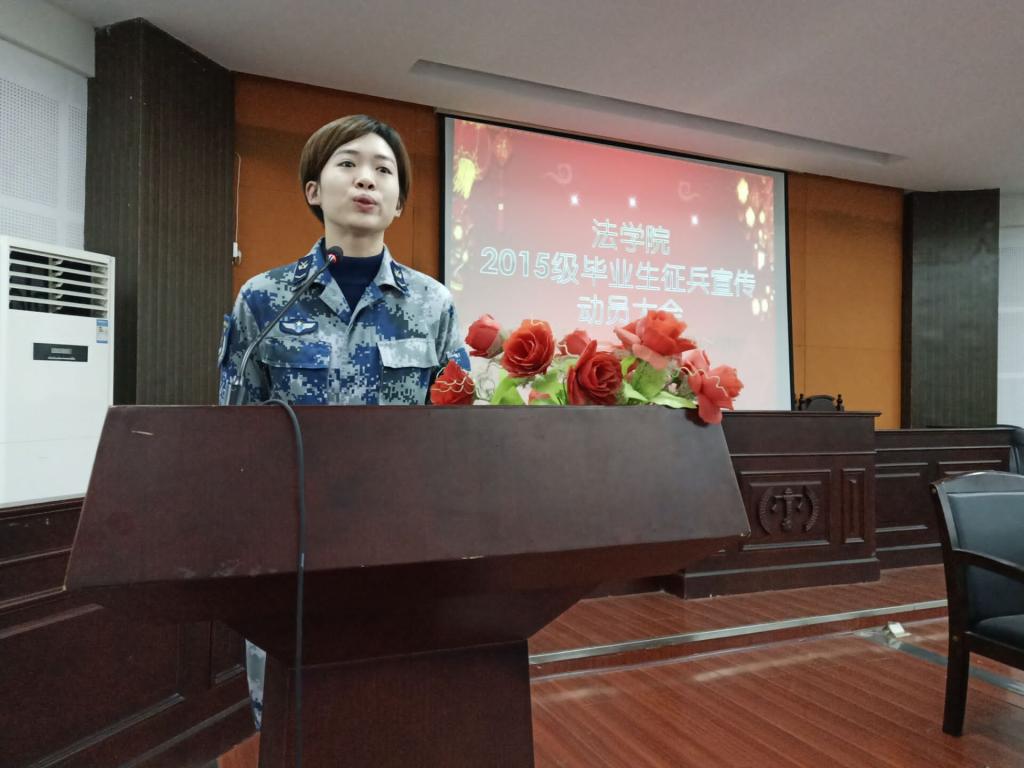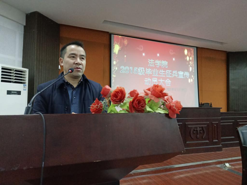2019年1月9日上午10点,法学院在致远楼202组织召开了2019届毕业生征兵宣传动员大会。院党总支书记尹钟宏、副书记刘依归、学校武装部部长郑秀星及辅导员刘惠婷、宋元烨参加,尹钟宏主持会议。