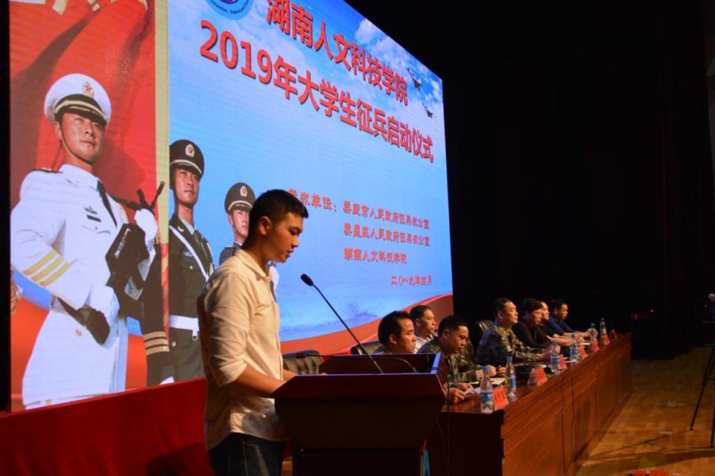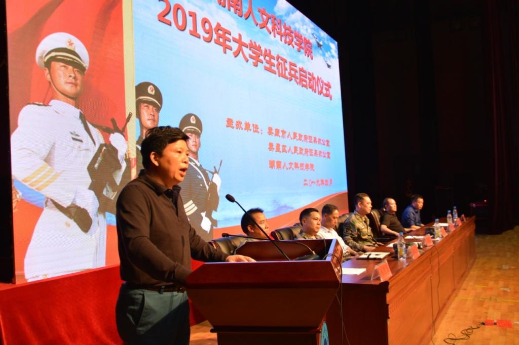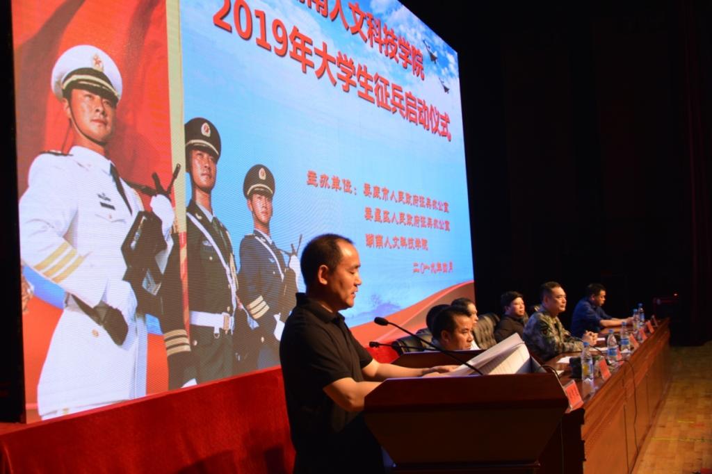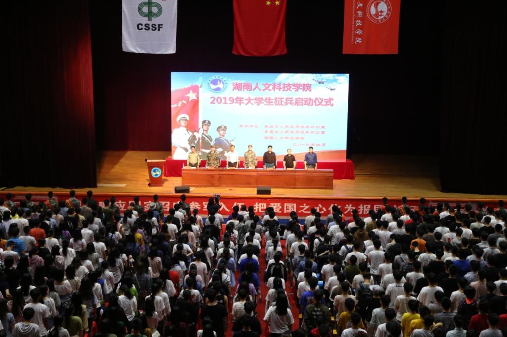4月24日晚,太阳成官网2019年大学生征兵启动仪式在体育馆隆重举行。本次启动仪式由娄底市人民政府征兵办、娄星区人民政府征兵办和学校联合举办,全校各年级近3000名大学生及学校征兵领导小组成员单位主要负责人、各学院党总支书记、副书记、辅导员、班主任参加。娄底军分区司令员蔡德益大校、娄星区武装部部长吴正平上校、校长刘和云、副校长刘铁峰出席,党委副书记刘铁铭主持仪式。