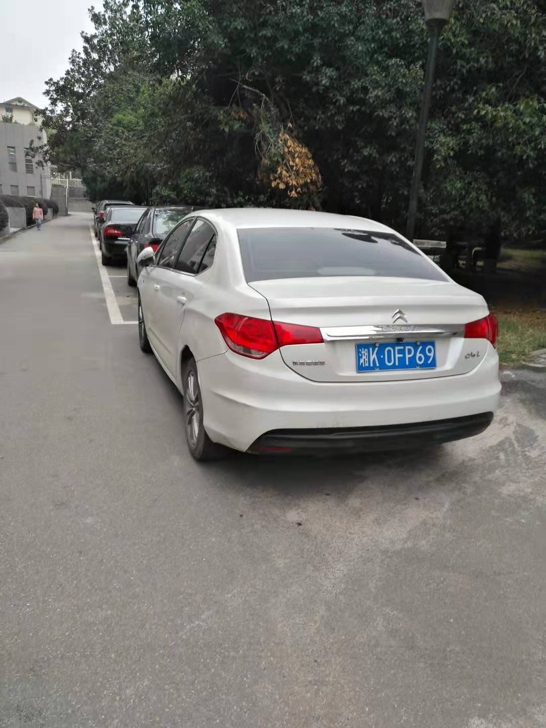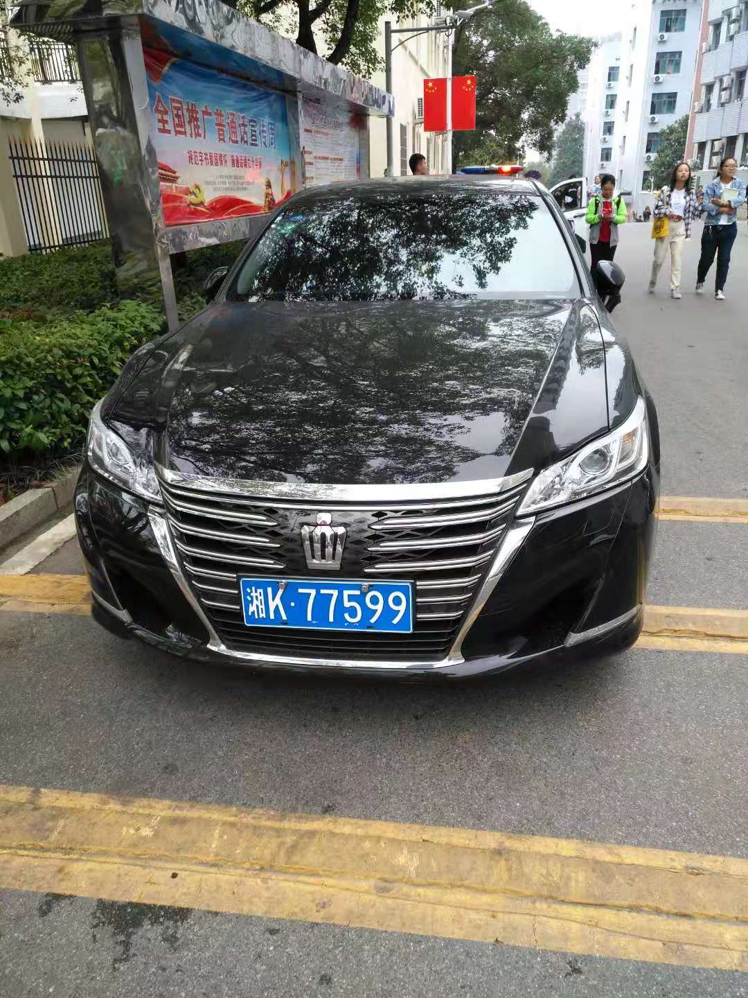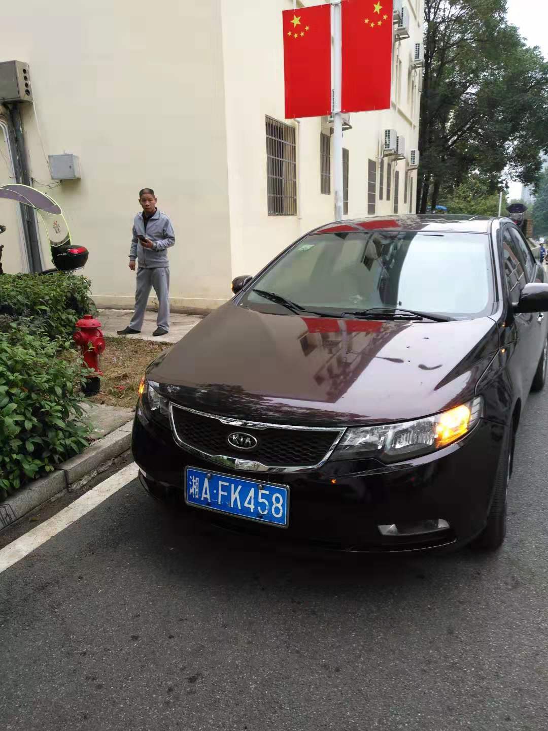 反向且没有停放在停车位(湘K8058D退休子女车辆、已电话告之校园停车规范)