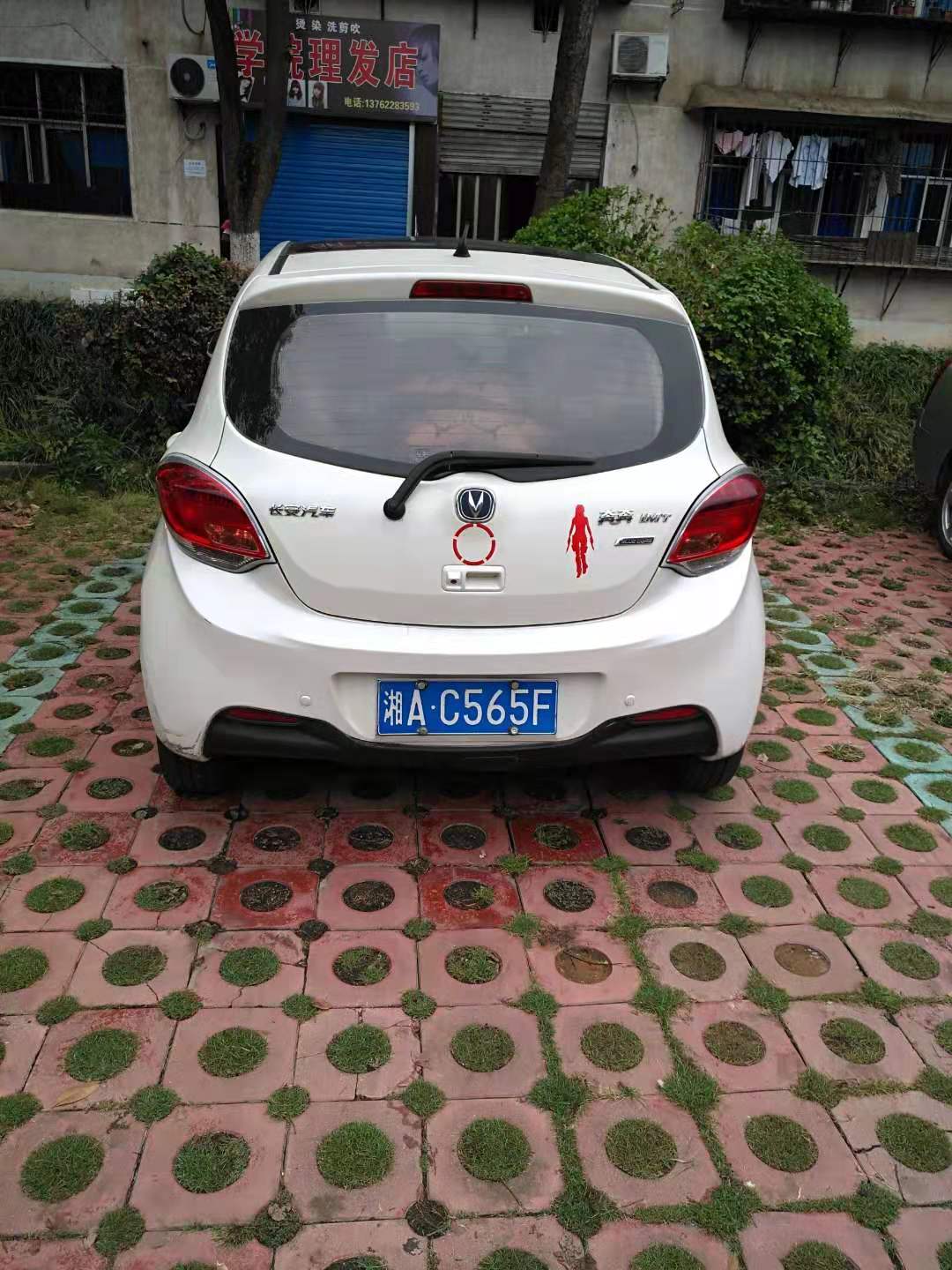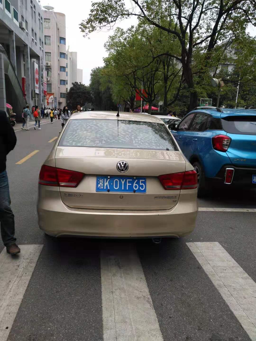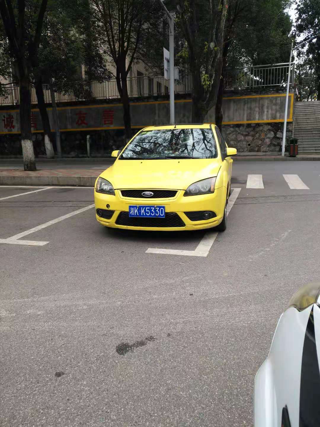 反向且没有停放在停车位(湘K8058D退休子女车辆、已电话告之校园停车规范)