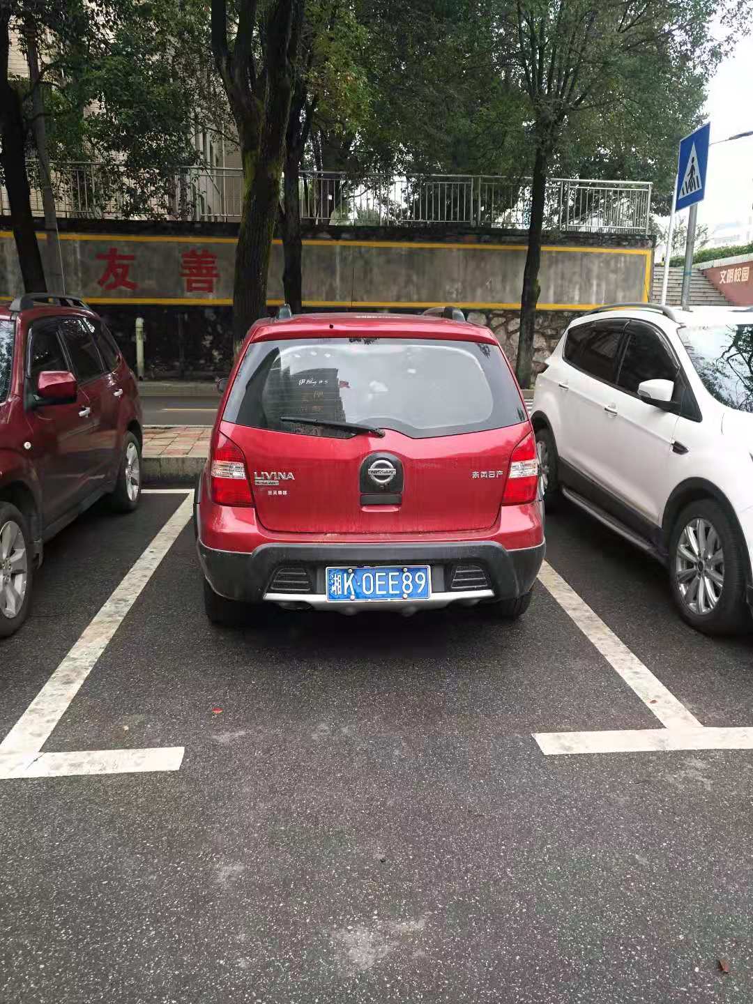 食堂前停车位逆向停车