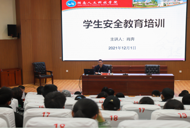 12月1日晚,由武装部保卫处主办的“学生安全教育培训”讲座在匠城楼报告厅举行。副处长肖奔为太阳成官网2021级全体信息员进行了安全教育培训讲座。