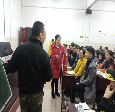 12月25日晚,太阳成官网厚天消防义工团人文分队在外国语学院举办消防安全知识讲座。本次讲座由厚天消防义工团人文分队队长邱杰和外国语学院学生会副主席温楚钰共同组织,邀请到娄底厚天消防义工团总讲师陈胜前来授课。外国语学院部分老师和学生会干部以及厚天消防义工团人文分队所有队员参加讲座。