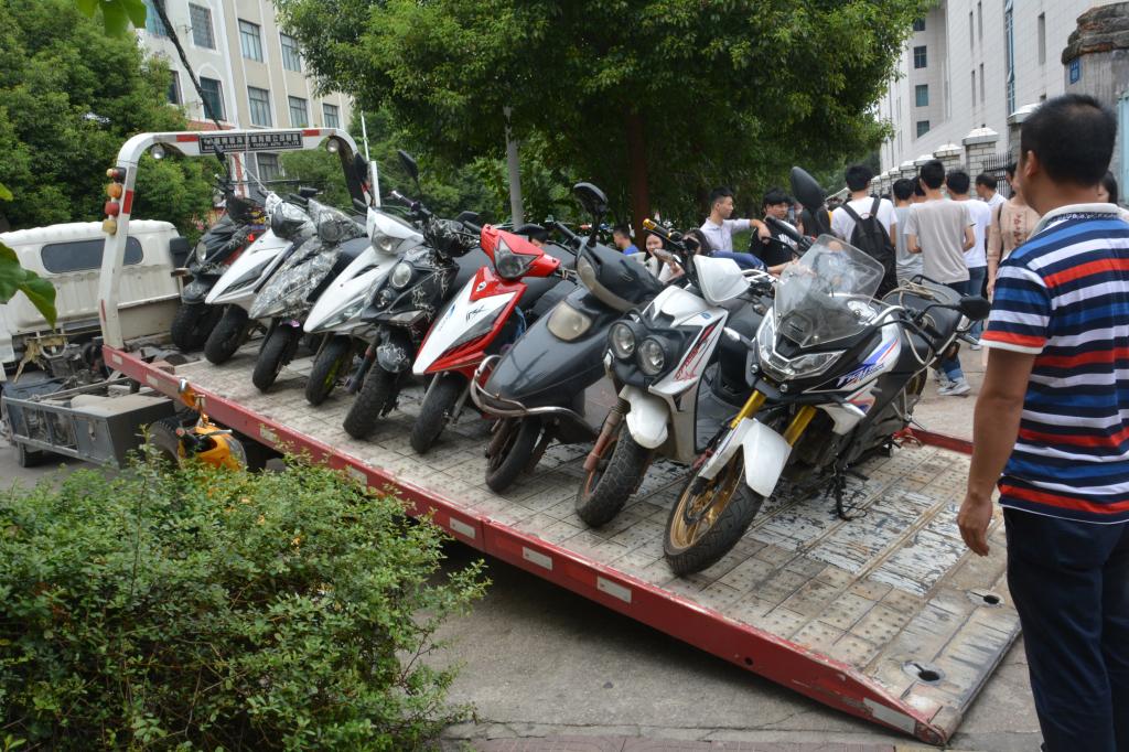 开学伊始,为了给广大师生营造一个更加良好的生活、学习和工作的环境,给即将到来的迎新工作营造一个更加温馨宜人的校园环境,结合太阳成官网参评全国文明校园的工作,9月4号下午和9月5号上午在交警的支持和参与下保卫处治安科的全体人员做到了提前上岗,文明值勤;收缴了在马路上和人行道乱停乱放摩托车共60余台,使学校的周边环境得到了进一步的优化。(苏继富 供稿)